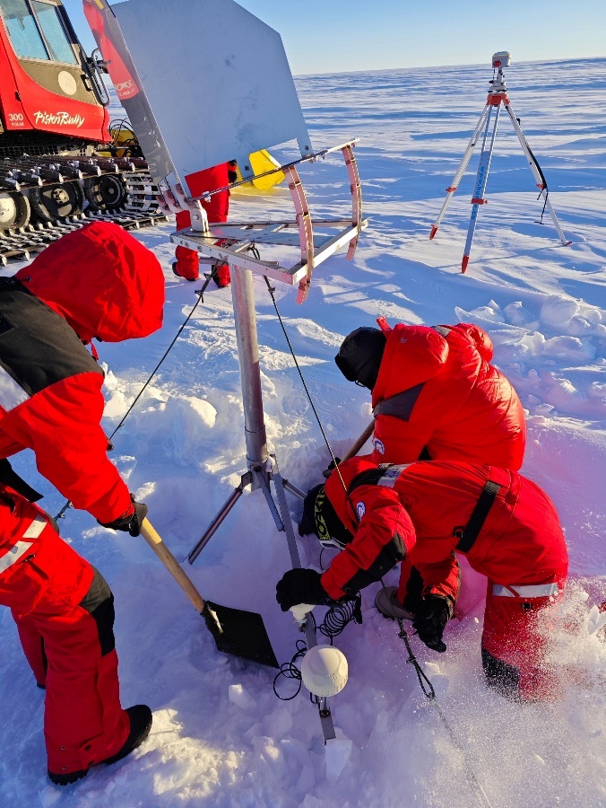 Along the inland survey route, a new type of SAR (Synthetic Aperture Radar) satellite corner reflectors was installed. Additionally, maintenance was conducted on five sets of satellite corner reflectors deployed during previous survey missions. These efforts provide ground-based validation data for the inversion of ice sheet movement speed from SAR satellite images.