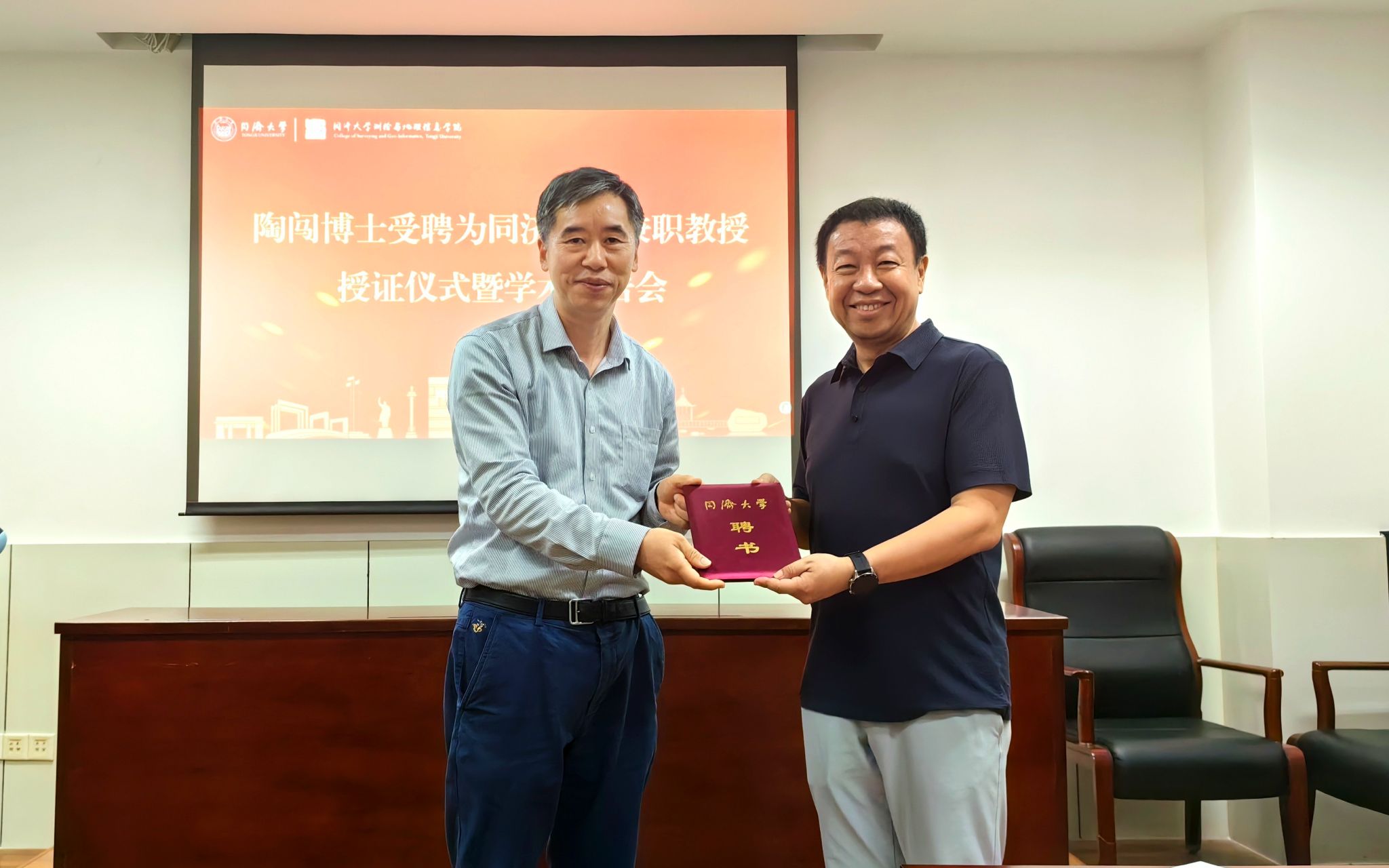 副校长童小华教授为陶闯博士颁发聘书,仪式由学院党委书记楼立志主持。