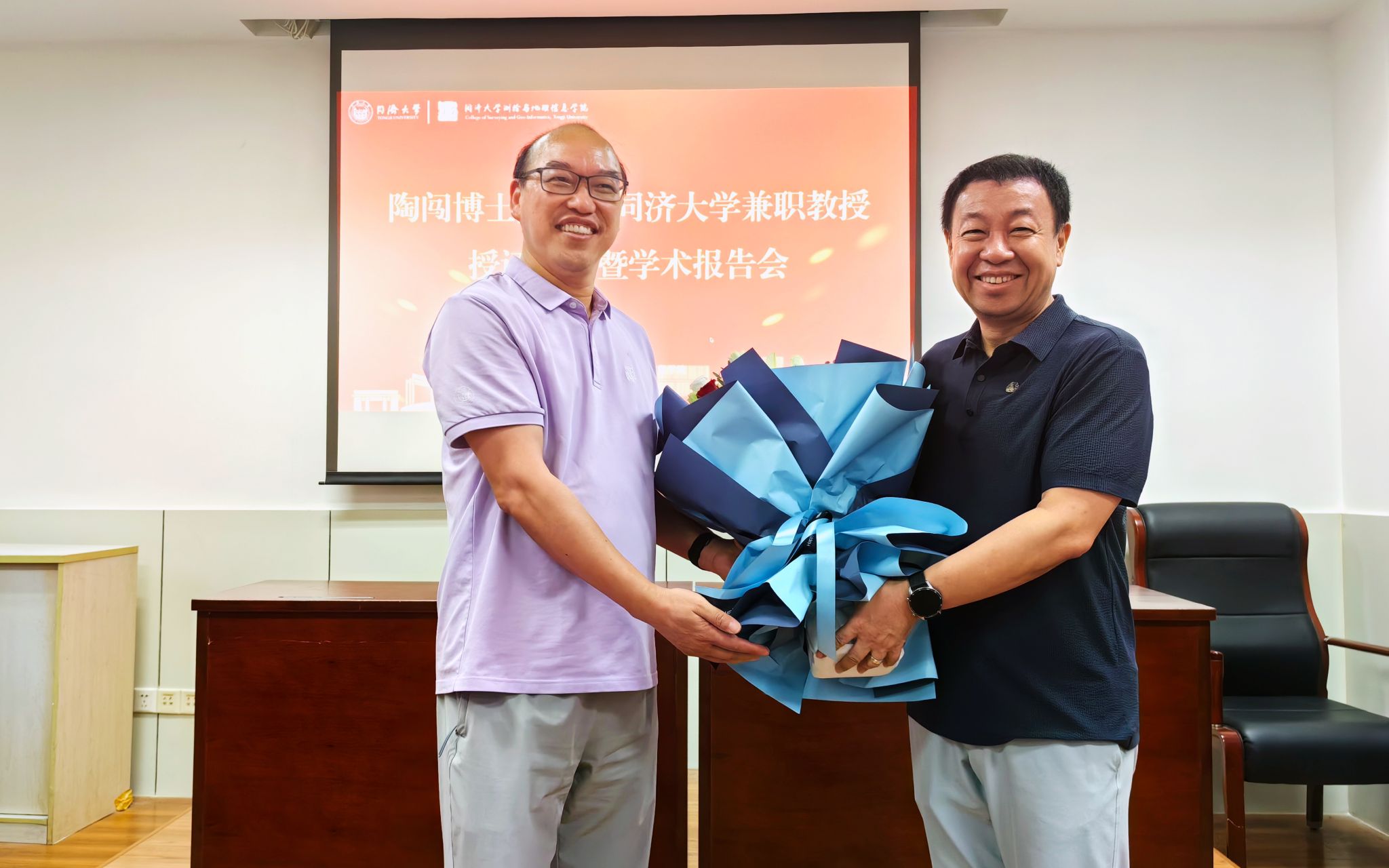 创新与创业实践。”楼立志书记介绍了陶闯博士在时空人工智能、数字孪生等领域的学术成就及研究方向,对其加入表示热烈欢迎。