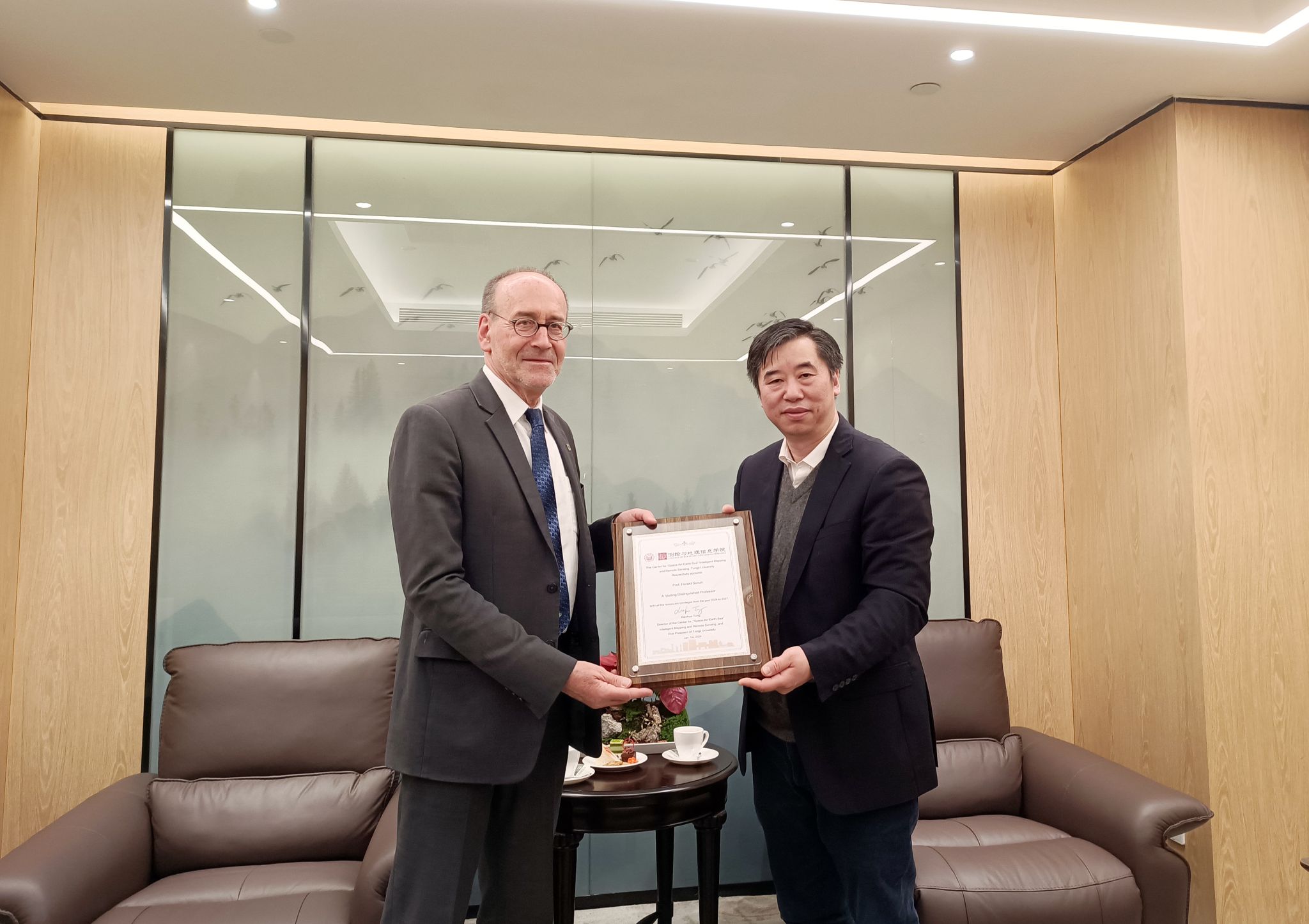 副校长、中国工程院院士童小华教授会见Harald Schuh教授,对他的到来表示热烈欢迎,并颁发荣誉教授证书。会谈过后,Harald Schuh教授参观了福利吧