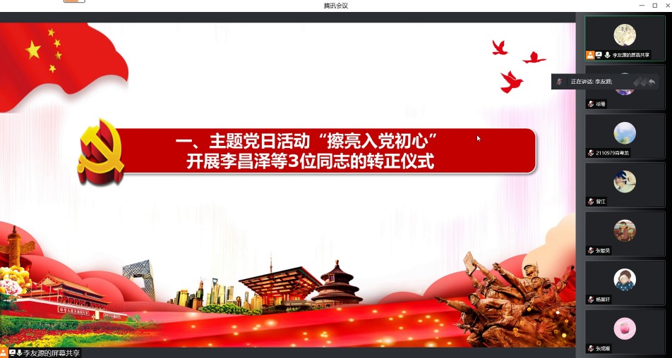 研究生第四党支部于2022年5月17日晚顺利开展了支部大会暨“迎校庆·共抗疫·显担当”主题党日活动。
